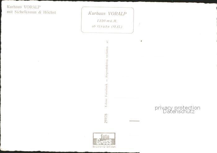 11630522 Grabs SG Kurhaus Voralp postalisch nicht gelaufen Erhaltung siehe scans KatCode: 11470190590852