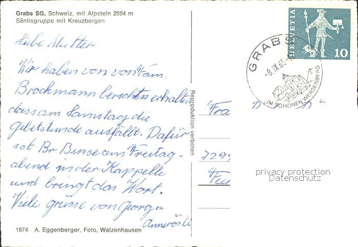 11631213 alte Postkarte Grabs SG mit Alpstein Saentisgruppe und Kreuzbergen postalisch gelaufen Erhaltung siehe scans KatCode: 11470190590852