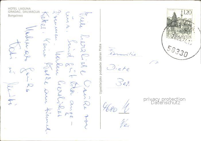 old postcard Gradac Hotel Laguna Dalmacija Bungalows postalisch gelaufen Erhaltung siehe scans