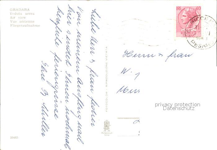 old postcard Gradara Pesaro Fliegeraufnahme postalisch gelaufen Erhaltung siehe scans