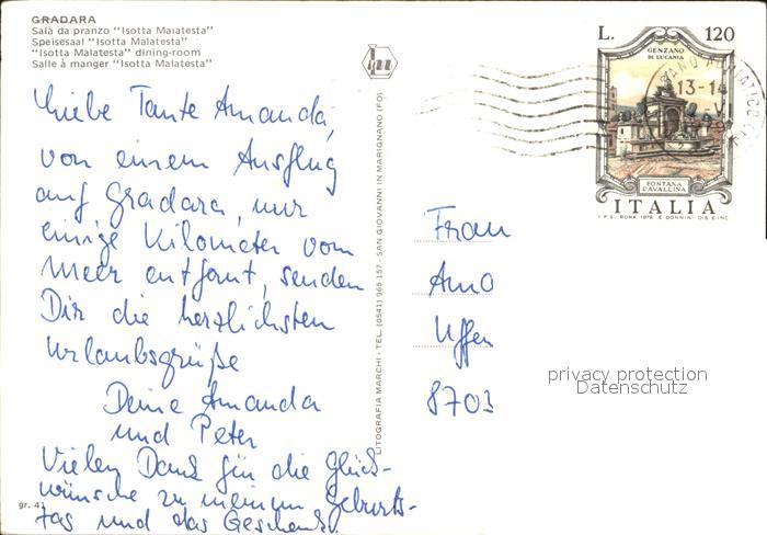 old postcard Gradara Pesaro Salla da pranzono Isotto Maratesta postalisch gelaufen Erhaltung siehe scans