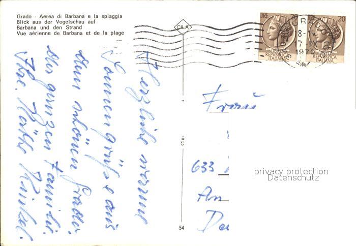 old postcard Grado Gorizia Barbana Strand Fliegeraufnahme postalisch gelaufen Erhaltung siehe scans