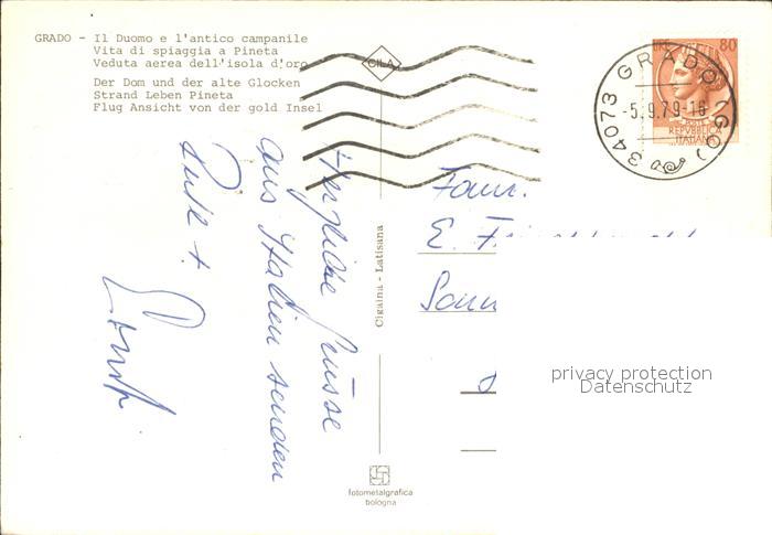 old postcard Grado Gorizia Dom Strand Luftbild postalisch gelaufen Erhaltung siehe scans