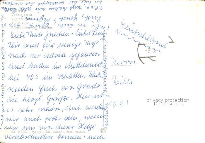 old postcard Grado Gorizia Fliegeraufnahme postalisch gelaufen Erhaltung siehe scans