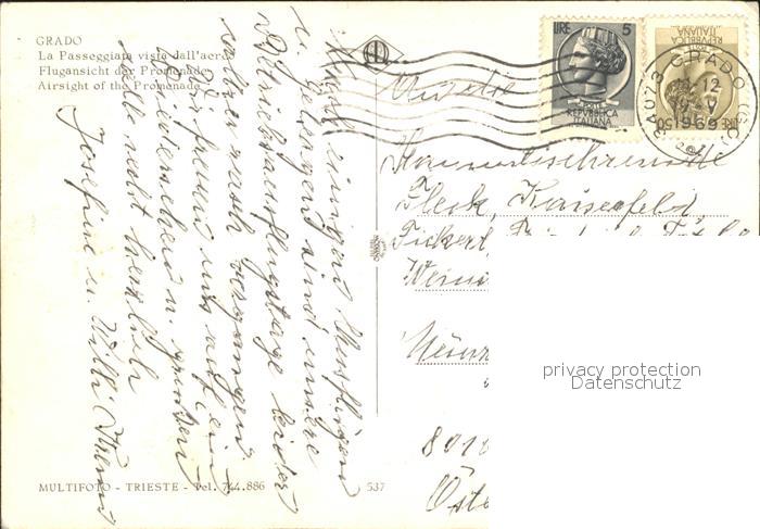 old postcard Grado Gorizia Fliegeraufnahme postalisch gelaufen Erhaltung siehe scans