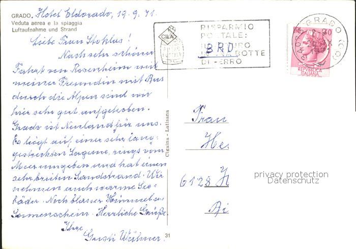 old postcard Grado Gorizia Fliegeraufnahme Strand Boot postalisch gelaufen Erhaltung siehe scans