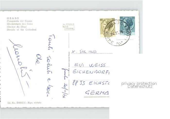 old postcard Grado Gorizia Glockenturm des Doms postalisch gelaufen Erhaltung siehe scans