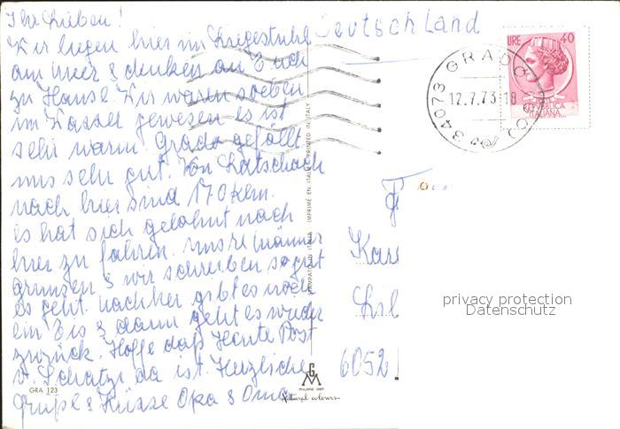 old postcard Grado Gorizia Hafen Kirche Strand postalisch gelaufen Erhaltung siehe scans