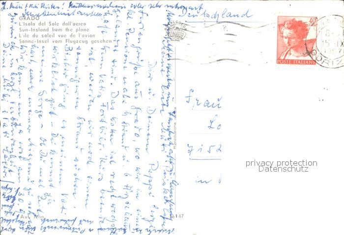 old postcard Grado Gorizia Isola del Sole dall’aereo postalisch gelaufen Erhaltung siehe scans