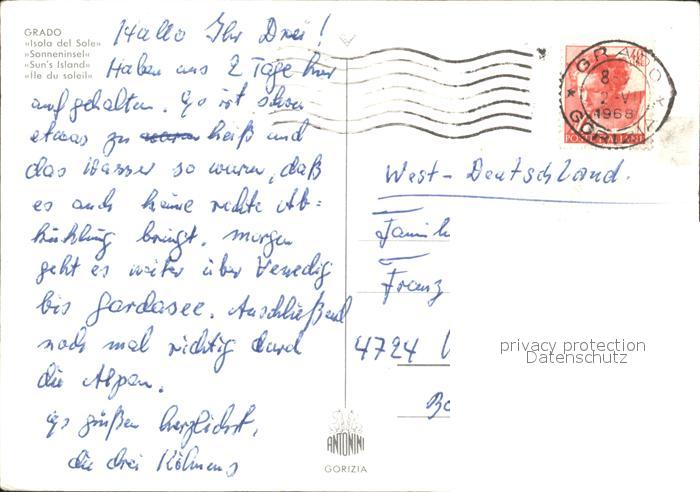 old postcard Grado Gorizia Isola del Sole Veduta aerea postalisch gelaufen Erhaltung siehe scans