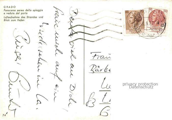 74033786 old postcard GRADO Gorizia IT Panorama aereo della spiaggia e veduta del porto postalisch gelaufen Erhaltung siehe scans [FriedD77] KatCode: 11240000000000