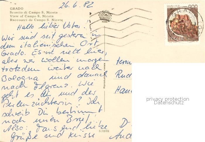 old postcard Grado Gorizia IT Scorcio di Campo San Niceta postalisch gelaufen Erhaltung siehe scans [FriedD77]
