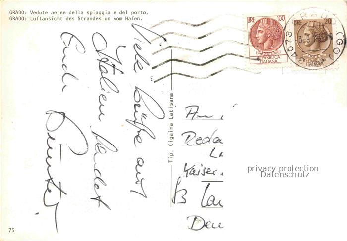 74035079 old postcard GRADO Gorizia IT Vedute aeree della spiaggia e del porto postalisch gelaufen Erhaltung siehe scans [FriedD77] KatCode: 11240000000000