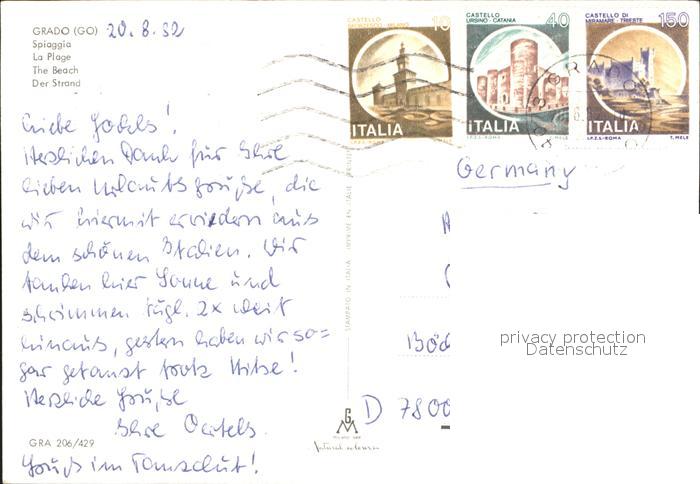 old postcard Grado Gorizia Spiaggia Strand postalisch gelaufen Erhaltung siehe scans