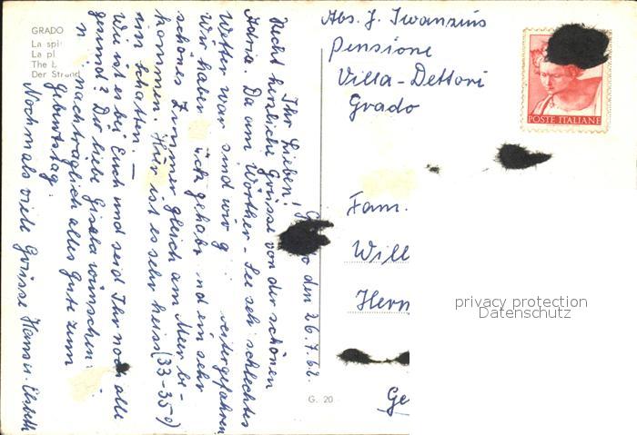 old postcard Grado Gorizia Strand mi Seebruecke postalisch gelaufen Erhaltung siehe scans