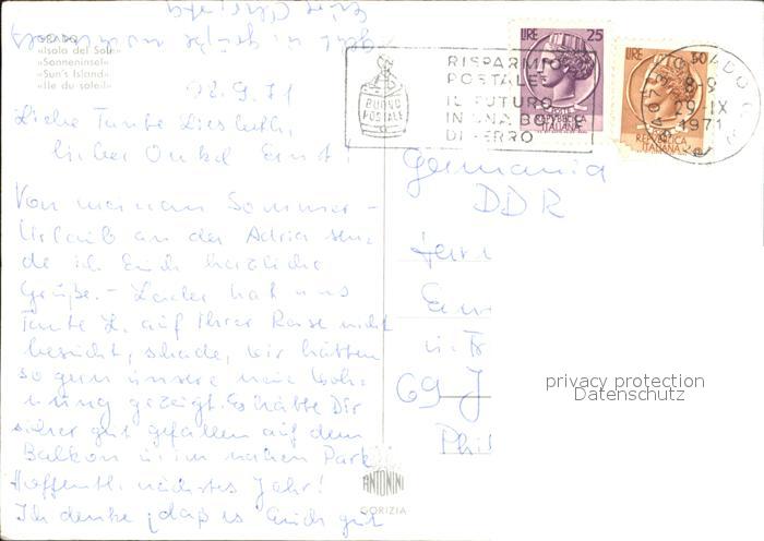 old postcard Grado Pineta Isola del Sole Fliegeraufnahme postalisch gelaufen Erhaltung siehe scans