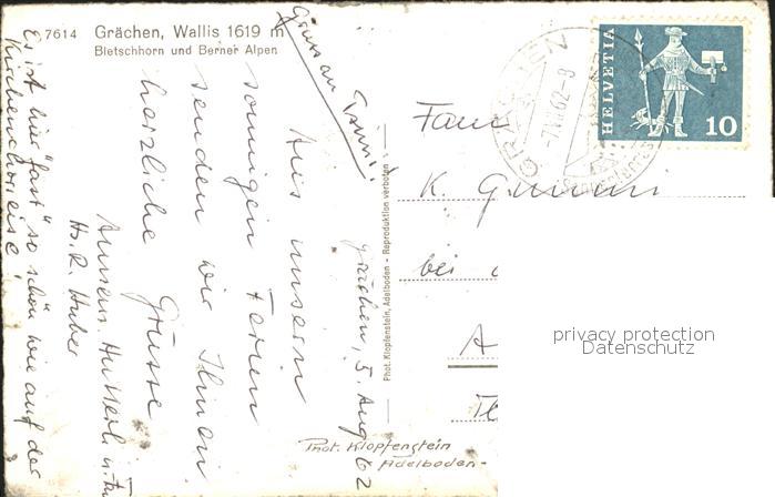 11836896 alte Postkarte Graechen VS Bletschhorn Berner Alpen postalisch gelaufen KatCode: 11470230750728