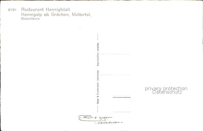 11853319 Graechen VS Restaurant Hannighuesli Hannigalp Mattertal Bietschhorn postalisch nicht gelaufen KatCode: 11470230750728