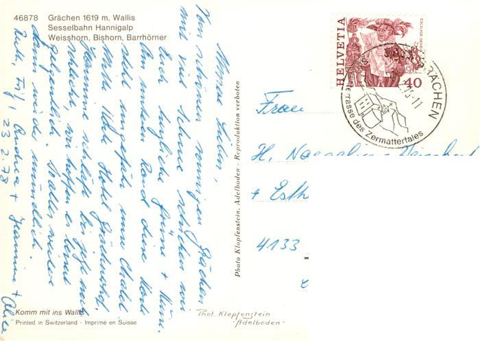13921155 alte Postkarte Graechen VS Sesselbahn Hannigalp Weisshorn Bishorn Barrhoerner Seilbahn postalisch gelaufen Erhaltung siehe scans [FriedD77] KatCode: 11470230750728