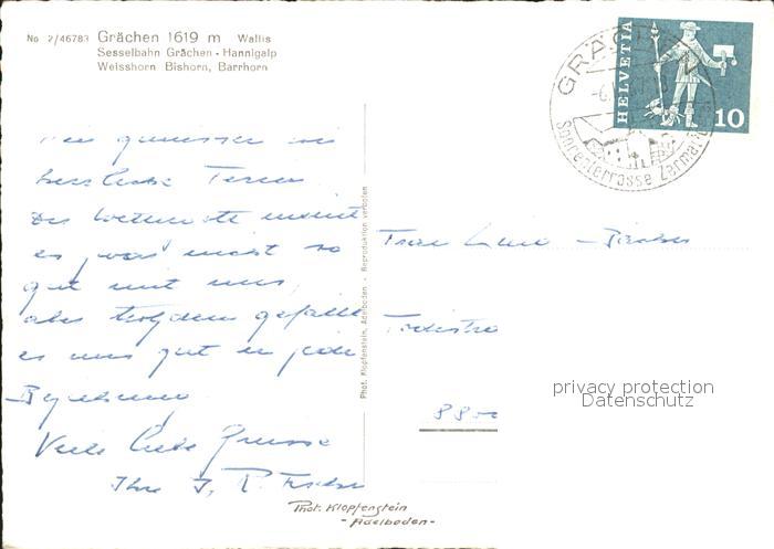 11647010 alte Postkarte Graechen VS Sesselbahn mit Weisshorn Bishorn Barrhorn postalisch gelaufen Erhaltung siehe scans KatCode: 11470230750728