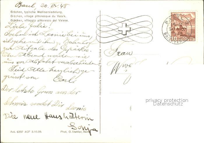 11647009 alte Postkarte Graechen VS Typische Wallisersiedlung Kuenstlerkarte postalisch gelaufen Erhaltung siehe scans KatCode: 11470230750728