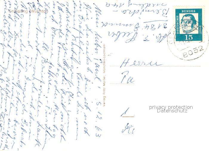 73644498 alte Postkarte Graefelfing Rathaus Kirche Gymnasium Volksschule Partie an der Wuerm postalisch gelaufen Erhaltung siehe scans [FriedD77] KatCode: 11110009184120