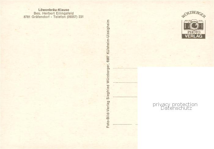 73862917 Graefendorf Unterfranken Loewenbraeu Klause Gastraeume Terrasse postalisch nicht gelaufen Erhaltung siehe scans [WerneD78] KatCode: 11110009677133