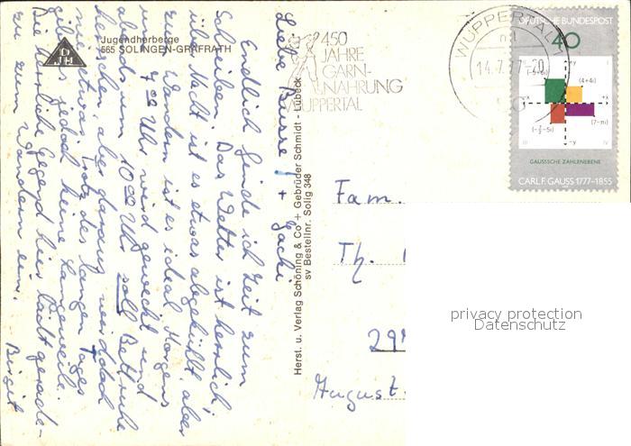 72024041 alte Postkarte Graefrath Jugendherberge postalisch gelaufen Erhaltung siehe scans KatCode: 11110009179125