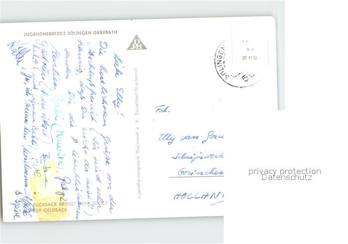 72921653 alte Postkarte Graefrath Jugendherberge postalisch gelaufen Erhaltung siehe scans [NatalD47] KatCode: 11110009179125