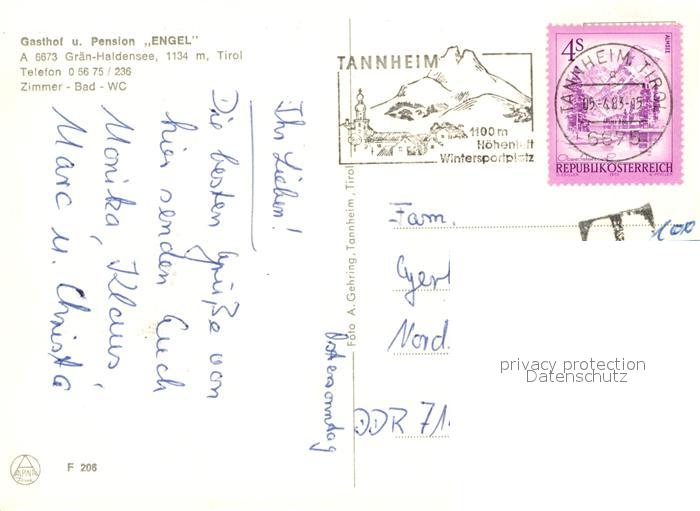 13010007 alte Postkarte Graen Tirol Alpengasthof Engel postalisch gelaufen Erhaltung siehe scans [NatalD47] KatCode: 11390331070811