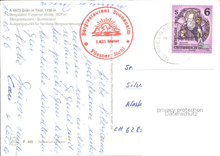 72227106 alte Postkarte Graen Tirol Bergstation Fuessner Joechle postalisch gelaufen Erhaltung siehe scans KatCode: 11390331070811