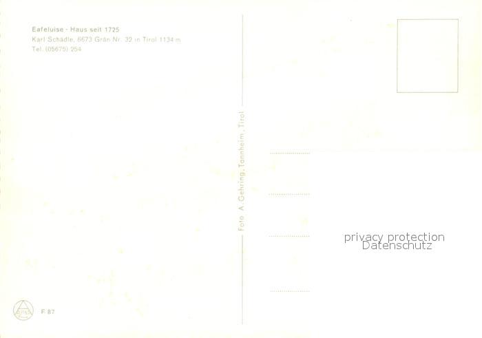 73518369 Graen Tirol Eafeluise Haus 18. Jhdt. Gaststaette Hotel Pension postalisch nicht gelaufen Erhaltung siehe scans [FriedD77] KatCode: 11390331070811