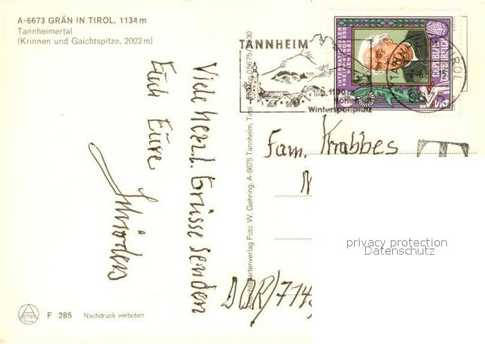 73046798 alte Postkarte Graen Tirol Fliegeraufnahme Tannheimertal postalisch gelaufen Erhaltung siehe scans [KathaD81] KatCode: 11390331070811