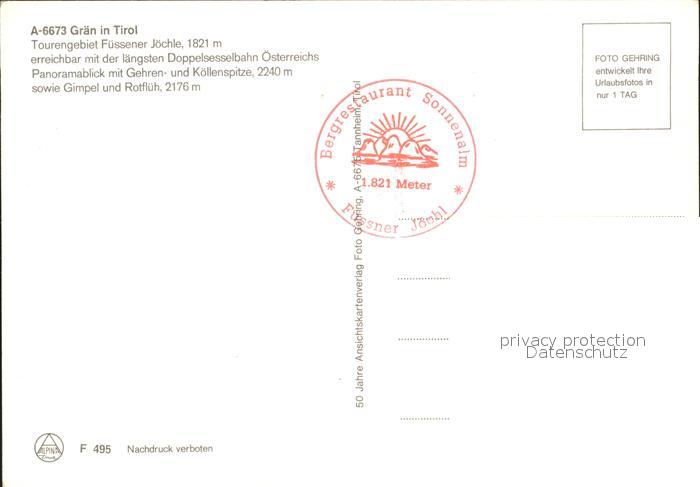 42923701 Graen Tirol Fuessener Joechle Doppelsesselbahn Gehren und Koellerspitze Bergstation Otto Mayer Huette postalisch nicht gelaufen Erhaltung siehe scans [WerneD48] KatCode: 11390331070811