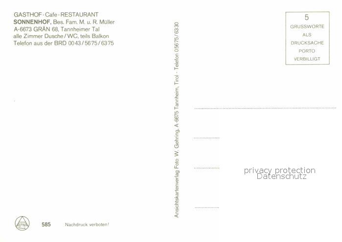 72759905 Graen Tirol Gasthaus Sonnenhof Terrasse postalisch nicht gelaufen Erhaltung siehe scans [WerneD78] KatCode: 11390331070811