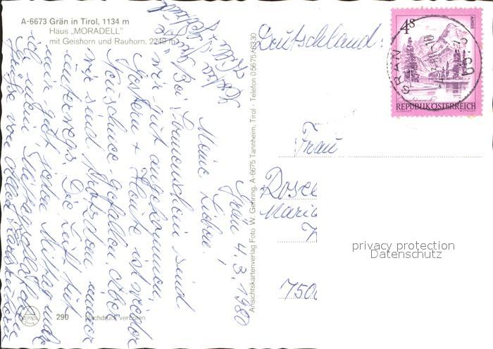 72071833 alte Postkarte Graen Tirol Haus Moradell Geishorn Rauhorn postalisch gelaufen KatCode: 11390331070811