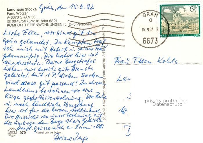 73587324 alte Postkarte Graen Tirol Landhaus Stocka postalisch gelaufen Erhaltung siehe scans [WerneD78] KatCode: 11390331070811