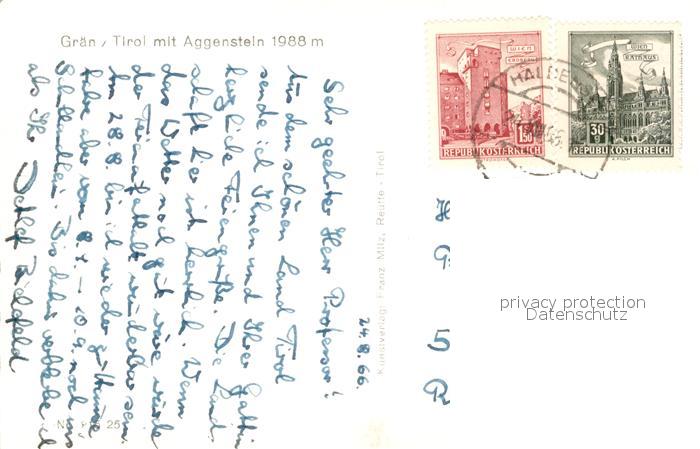 13597833 alte Postkarte Graen Tirol mit Aggenstein postalisch gelaufen Erhaltung siehe scans [WerneD78] KatCode: 11390331070811