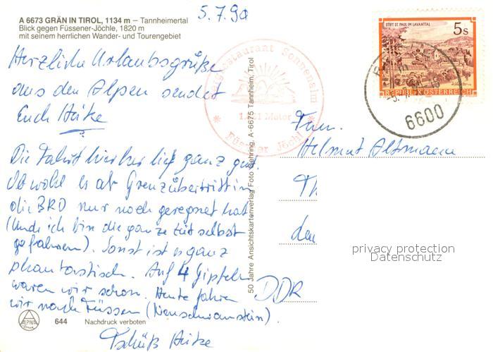 73626068 alte Postkarte Graen Tirol Panorama Tannheimertal Fuessener Joechle Wanderer Sesselbahn postalisch gelaufen Erhaltung siehe scans [FriedD77] KatCode: 11390331070811