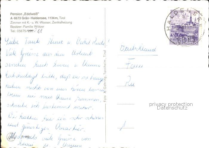 72439054 alte Postkarte Graen Tirol Pension Edelweiss postalisch gelaufen Erhaltung siehe scans KatCode: 11390331070811