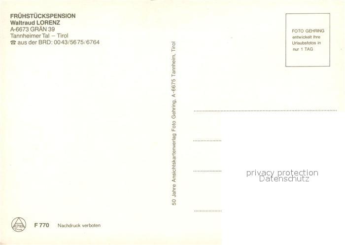 13218744 Graen Tirol Pension Haus Scheiber Graen Waltraud Lorenz postalisch nicht gelaufen Erhaltung siehe scans [LiesaD40] KatCode: 11390331070811