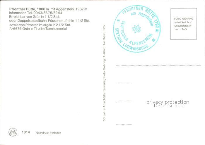 72257008 Graen Tirol Pfrontner Huette mit Aggenstein Allgaeuer Alpen postalisch nicht gelaufen Erhaltung siehe scans KatCode: 11390331070811