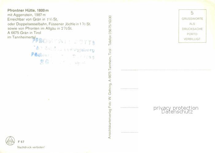 72674999 Graen Tirol Pfrontner Huette mit Aggenstein postalisch nicht gelaufen Erhaltung siehe scans [WerneD78] KatCode: 11390331070811