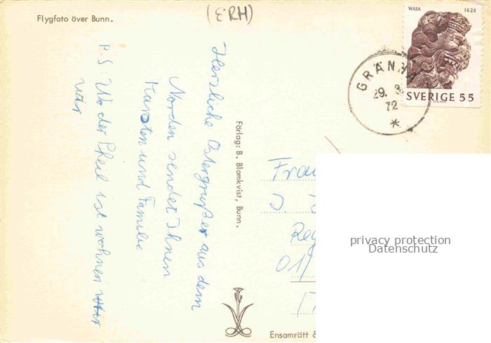 74027634 old postcard Graenna Sweden Panorama Bunn See postalisch gelaufen Fliegeraufnahme Erhaltung siehe scans [FriedD77] KatCode: 11460
