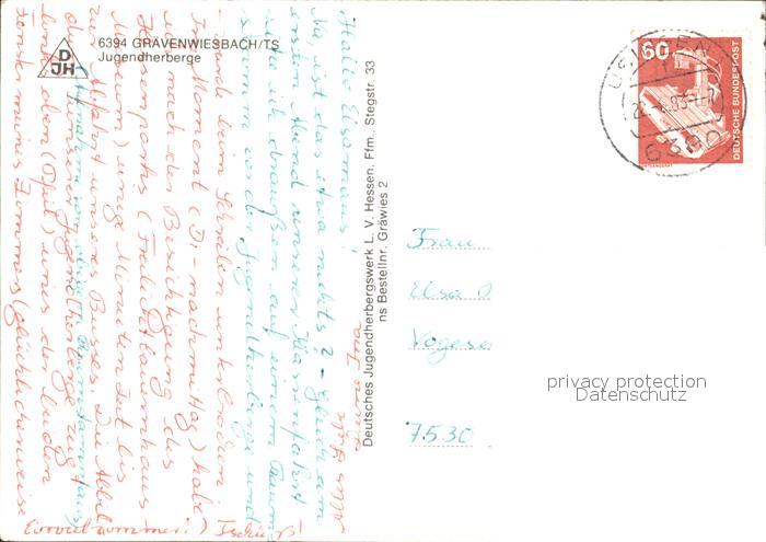 72059169 alte Postkarte Graevenwiesbach Jugendherberge postalisch gelaufen Erhaltung siehe scans KatCode: 11110006434004