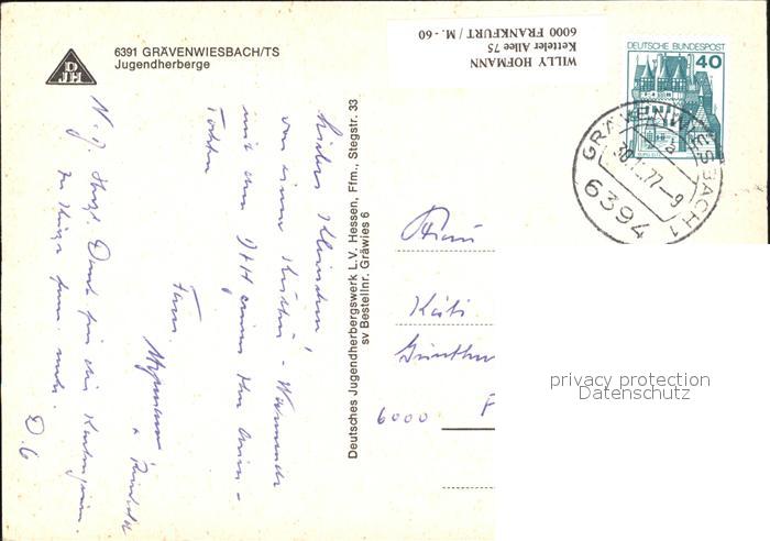 alte Postkarte Graevenwiesbach Jugendherberge Saalburg Richard Schirrmann postalisch gelaufen Erhaltung siehe scans