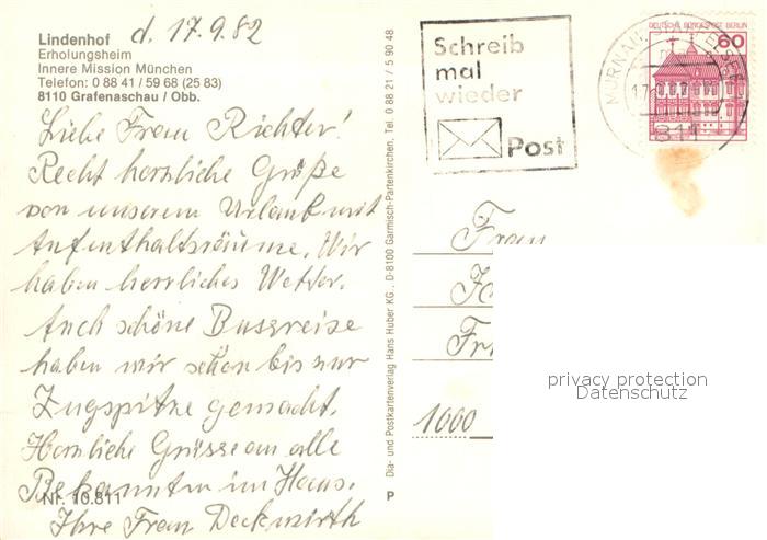 73652768 alte Postkarte Grafenaschau Erholungsheim Lindenhof Fliegeraufnahme Gastraeume Zimmer postalisch gelaufen Erhaltung siehe scans [WerneD78] KatCode: 11110009180131