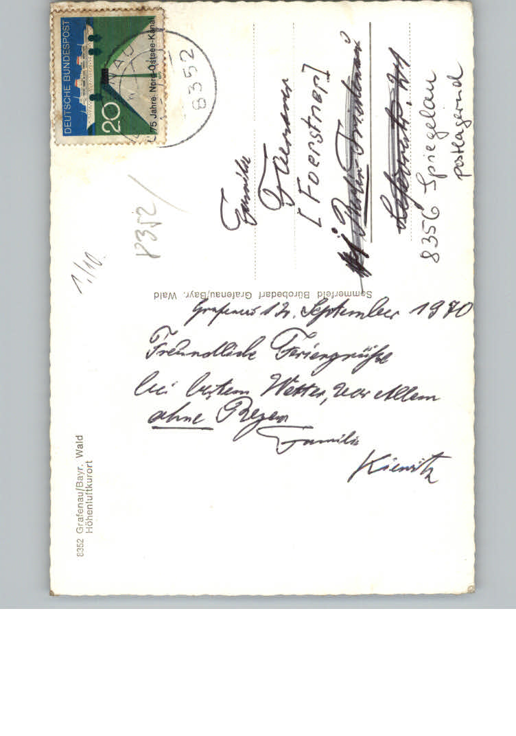 31159287 Grafenau Niederbayern postalisch nicht gelaufen KatCode: 11110009272120