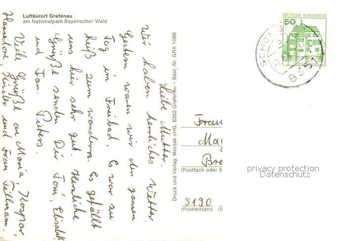 72960118 alte Postkarte Grafenau Niederbayern postalisch gelaufen Erhaltung siehe scans [PaolaD17] KatCode: 11110009272120