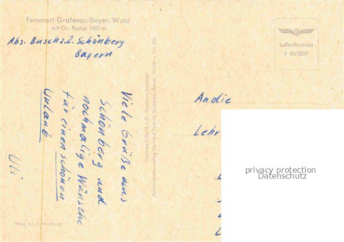 34143566 Grafenau Niederbayern Bayerischer Wald Bayern Panorama Ferienort Blick gegen Grosser Rachel postalisch nicht gelaufen Fliegeraufnahme Erhaltung siehe scans [FriedD77] KatCode: 11110009272120